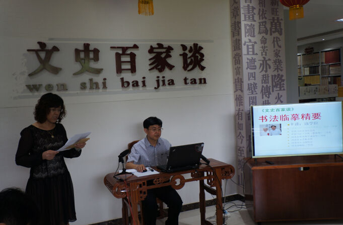 与展览相辉映,寇学臣教授坐客“文史百家谈”,主讲《书法临摹精要》,他以自己20余年的教学经历,娓娓讲述书法临摹的要义与内涵,讲者学思敏捷,闻者聚精会神,会心处上下互动,双方共同分享这场书法文化盛宴。