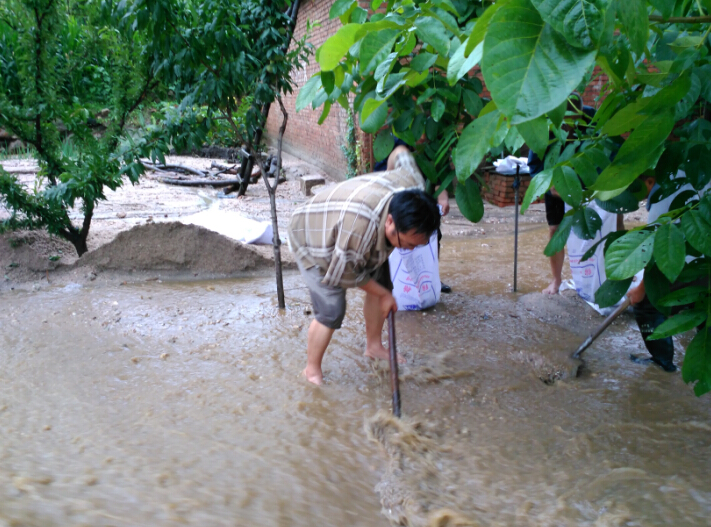 7月19日、24日晚连续的两次特大暴雨导致灵寿县陈庄镇新开村山洪暴发、山体滑坡,并引发了泥石流。上百亩农作物及果树受灾,九眼机井、三处堤坝、2500米渠道被冲毁,12间房屋倒塌,16处公路、4座桥梁、两处电力设施损毁。灵寿县陈庄镇36个自然村中,新开村是受灾最严重的。暴雨的侵袭,给全村172户村民带来了无穷的困窘。